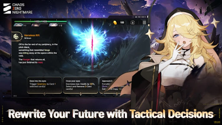 "Chaos Zero Nightmare" ir jauna veida lomu spēle, kurā jūsu izvēles patiešām veido piedzīvojumu. Skatieties pasaulē caur aģentu acīm un izjūtiet katras kaujas svaru. Ar unikālām kartēm un sazarotiem stāsta ceļiem, katra spēle ir atšķirīga, pielāgojoties jūsu lēmumiem un progresam Haosa vidū. Izstrādājiet savu stratēģiju, apgūstiet pastāvīgi mainīgo kaujas lauku un, pārvarot postošu stresu un sabrukušus aģentus, turpiniet misiju, iegremdējoties brutāli spilgtā tumšās fantāzijas pieredzē, kas apstulbs jūsu prātu.