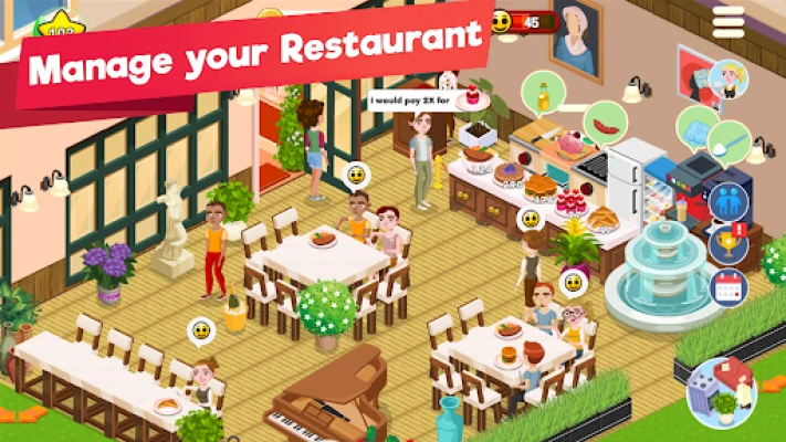 Iztēlojieties savu sapņu restorānu. Šī aizraujošā spēle aicina jūs veidot savu unikālo kulinārijas stāstu, pārvēršot mājīgu kafejnīcu par rosīgu gastronomisku paradīzi. Sākot no sulīgiem burgeriem un izsmalcinātām picām līdz maigiem steikiem un elegantiem desertiem, atraisiet savu iekšējo šefpavāru un radiet ēdienkarti, kas apburs ikvienu klientu. Rūpīgi veidojiet savu telpu, iegādājoties augstākās klases virtuves iekārtas, elegantus galdus un ērtus krēslus, lai radītu nevainojamu atmosfēru. Katrs jūsu pagatavotais ēdiens un katrs apmierinātais klients ir solis tuvāk jūsu zīmola izveidei un kļūšanai par īstu kafejnīcas magnātu.