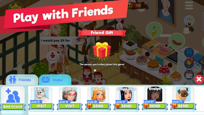 Papildus kulinārijas meistarībai, izpaudiet savu unikālo stilu. Atraisiet radošumu, dekorējot savu kafejnīcu ar jauniem logiem, košām krāsām, elegantām flīzēm un aicinošām durvīm. Personalizējiet katru stūri ar daudzveidīgām mēbelēm un burvīgām dekorācijām, lai radītu aicinošu atmosfēru, kas pelna vizuālās zvaigznes un piesaista vēl vairāk lojālu klientu. Iesaistieties aizraujošā stāstā, veicot izšķirošas izvēles, kas veido jūsu piedzīvojumu. Sazinieties ar draugiem, apmainieties ar dāvanām un apmeklējiet viens otra plaukstošos uzņēmumus. Gudri investējiet savu nopelnīto peļņu, lai atbloķētu jaunas pasaules receptes un ekskluzīvus dekorus, nostiprinot savu mantojumu kā izcilākais kulinārijas uzņēmējs šajā saistošajā dīkstāves magnāta pieredzē.