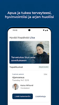 Saņemiet veselības un labklājības aprūpi no Ziemeļkarēlijas labklājības zonas profesionāļiem jebkurā vietā. Iegūstiet atbalstu ikdienas rūpēm, veselībai un labklājībai, izmantojot ērtu un pieejamu digitālo pakalpojumu.