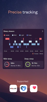 **sleep²** Pro versija darbojas kā jūsu personīgais miega treneris, kas nepārtraukti pielāgojas jūsu ievadītajiem datiem, laika gaitā kļūstot precīzāks un efektīvāks. Lai nodrošinātu visaugstāko precizitāti, varat izmantot Polar biodatu sensoru (H10 vai Verity Sense) ar **sleep²**. Tomēr mēs piedāvājam arī elastīgas alternatīvas: ērti importējiet datus no citām ierīcēm, izmantojot Apple Health, Google Health vai citus atbalstītos izsekotājus, vai arī vienkārši manuāli reģistrējiet savas naktis lietotnes dienasgrāmatā. Neatkarīgi no izvēlētās metodes, **sleep²** analizēs jūsu datus un sniegs jums detalizētu ziņojumu, kas ietver personalizētu informāciju, padomus un pielāgotu miega treniņu.