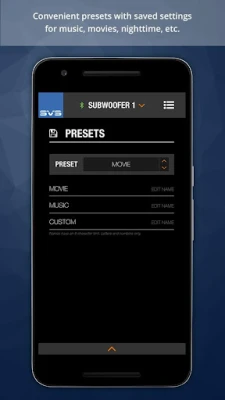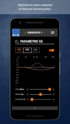 SVS lietotne maksimāli atklāj jūsu SVS zemfrekvenču skaļruņu, piemēram, 17-Ultra RIEvolution un 1000 Pro sērijas, potenciālu. Tā piedāvā uzlabotu DSP funkcionalitāti un optimizāciju, pielāgojot skaņu jūsu telpai, skaļruņiem un individuālajām vēlmēm.