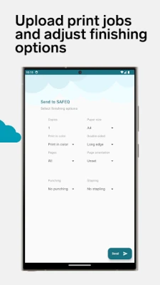 Lietotne piedāvā vienotu autentifikācijas pieredzi, kas ir nemainīga neatkarīgi no tā, vai piesakāties caur WebUI, datora klientu vai mobilo lietotni. Kad esat veiksmīgi autentificējies, esat gatavs darbam. Drukas iesniegšanas process ir intuitīvi vienkāršs: atveriet lietotni, pieskarieties pogai "+", izvēlieties dokumentu – gan no ierīces atmiņas, gan no populāriem mākoņpakalpojumiem, piemēram, OneDrive vai Google Drive. Pielāgojiet apdares iestatījumus un nosūtiet. Drukas uzdevums tiks droši augšupielādēts, un jūs to varēsiet atbrīvot, pieslēdzoties savai daudzfunkcionālajai iekārtai (MFP) ierastajā veidā. Lai vēl vairāk atvieglotu darbu, ir iespējams tieši no citām lietotnēm izmantot funkciju "Sūtīt uz" vai "Koplietot ar" YSoft SAFEQ mobilo lietotni, padarot drukāšanu vēl ātrāku un integrētāku jūsu ikdienas darbplūsmā.