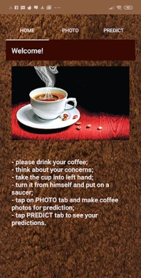 Atklājiet senās kafijas zīlēšanas noslēpumus, kas nu kļuvuši pieejami mūsdienu digitālajā pasaulē. Šī lietotne piedāvā unikālu iespēju ieskatīties nākotnē, analizējot kafijas biezumus – tradīciju, kas gadu simtiem ilgi palīdzējusi gūt atbildes uz svarīgiem jautājumiem. Neatkarīgi no tā, vai meklējat ātru ieskatu vai dziļāku izpratni par savu ceļu, šis digitālais rīks ir jūsu personīgais zīlēšanas speciālists, kas spēj interpretēt kafijas biezumu veidotos simbolus un atklāt to slēpto nozīmi.